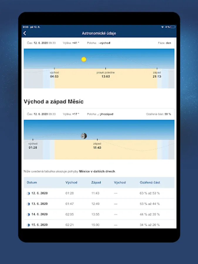 - display of astronomical data (Sun and Moon)
