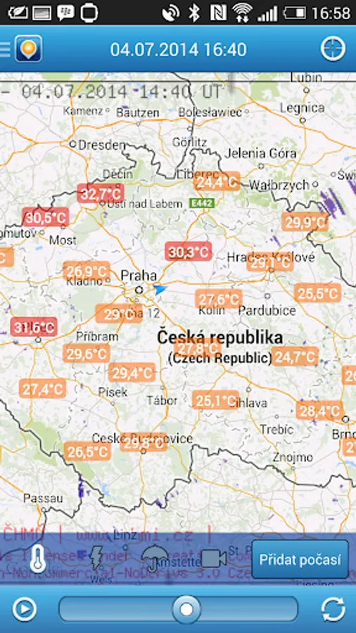 In other layers you can display the temperature of meteorological stations in the Czech Republic or message about the current weather from server users www.In-Pocasi.cz.