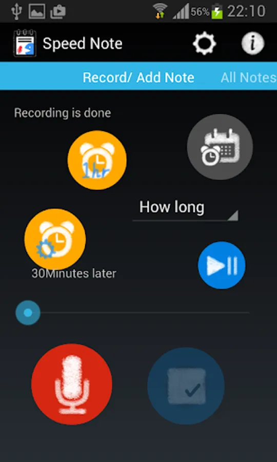 To memorize down an affair on your mobile device, the fastest way is "say it". Simply says it to the device through the microphone, one single click to add a notification time, and it's done! The recorded reminder will then notify you at the time you specified. Click to listen to the recorded voice note, simply and quickly make your personal important note finished.