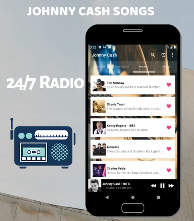 ✔ Johnny Cash Radio: The app features a personalized Johnny Cash radio station, where users can listen to their favorite songs and discover new songs by Johnny Cash and other similar artists.