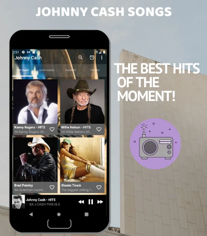 Johnny Cash Country Songs is a music streaming app that focuses on the music of legendary American singer-songwriter and musician Johnny Cash.