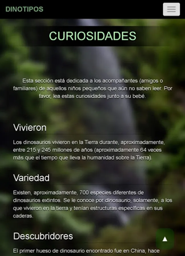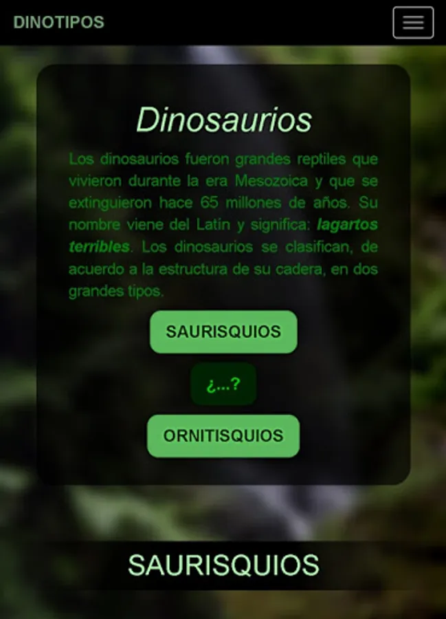 In the form of hypermedia, this application gives you basic knowledge about dinosaurs, their types and curiosities.