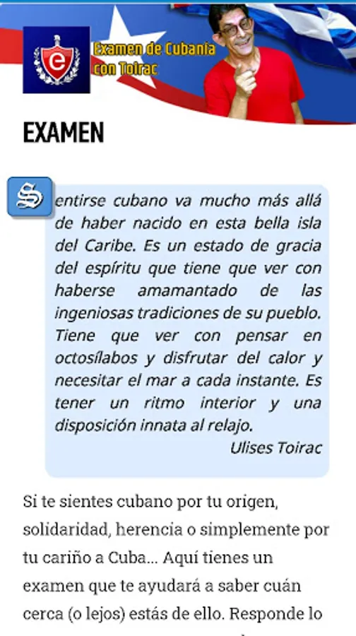 Cuban comedian Ulises Toirac investigates the traditions of the island of Cuba and proposes a challenge to those who say they know it: an exam, full of witty questions, that will test your mental agility and your knowledge of the popular Cuban language.
