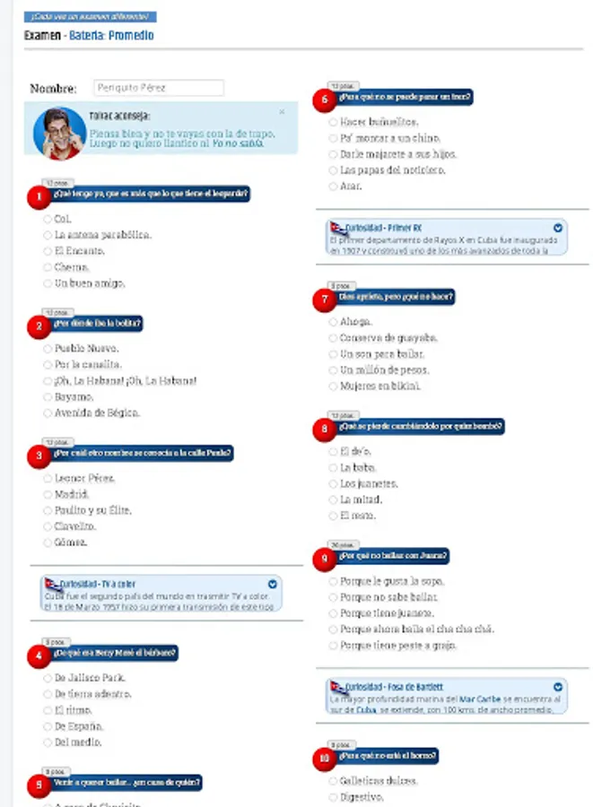 Take part in a very nice test, in which you will not only test your knowledge, but also have fun with the suggestions for each question. And on the other hand, you will have an idea of how close or far from their oral traditions you are.