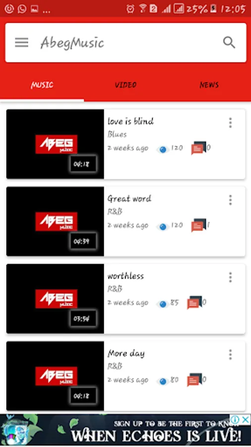 AbegMusic is a content streaming platform realm. The service curates musics audio and videos with the latest update in news around the world using advanced algorithms based on a specific track or artist, delivering song suggestions catered for you that get better with feedback. Simply boot up the app and that's all. The application usage is totally free but with some well distributed and not annoying internal ads. Fortunately, AbegMusic offers a truly massive library of tracks, but its headline feature is the app’s Music feature. The Favorite learns about your choice types of music and creates a mix of music and artists just for you, based on artists it knows you like and some that it thinks you will like. It's an app for the youth, adult and all sociological and cultural demographics.