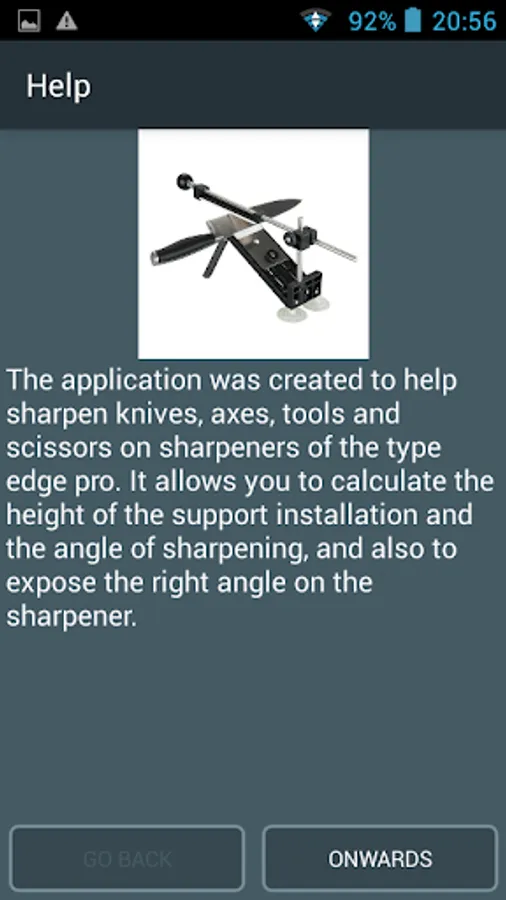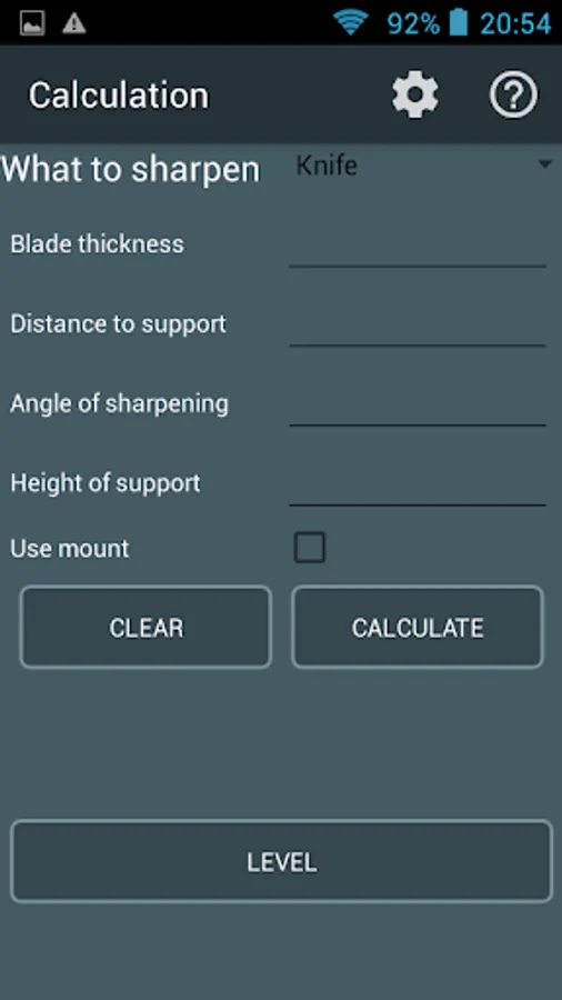 The calculation mode is used if there is no orientation sensor on the phone or if you need to know the angle of sharpening that is difficult to measure (for example, a knife with wedge-shaped descents or an ax).