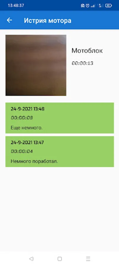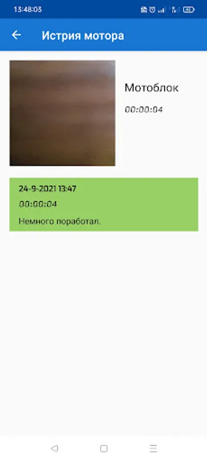 The Motor Hours application is designed to track the operating time of various motors, such as walk-behind tractors, boat motors, various motor pumps and generators.