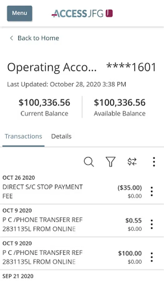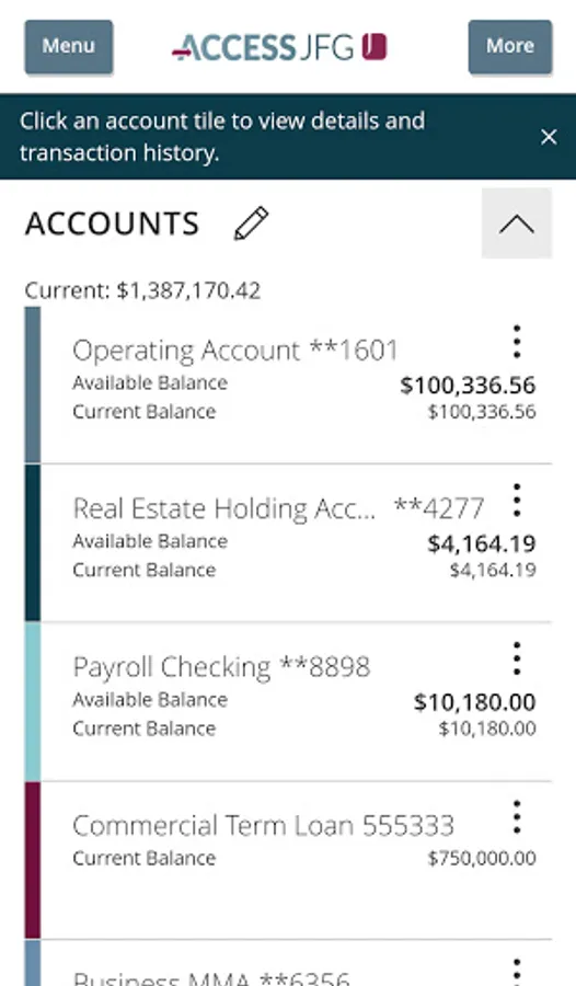 The benefits of AccessJFG (Business/Commercial) mobile app: