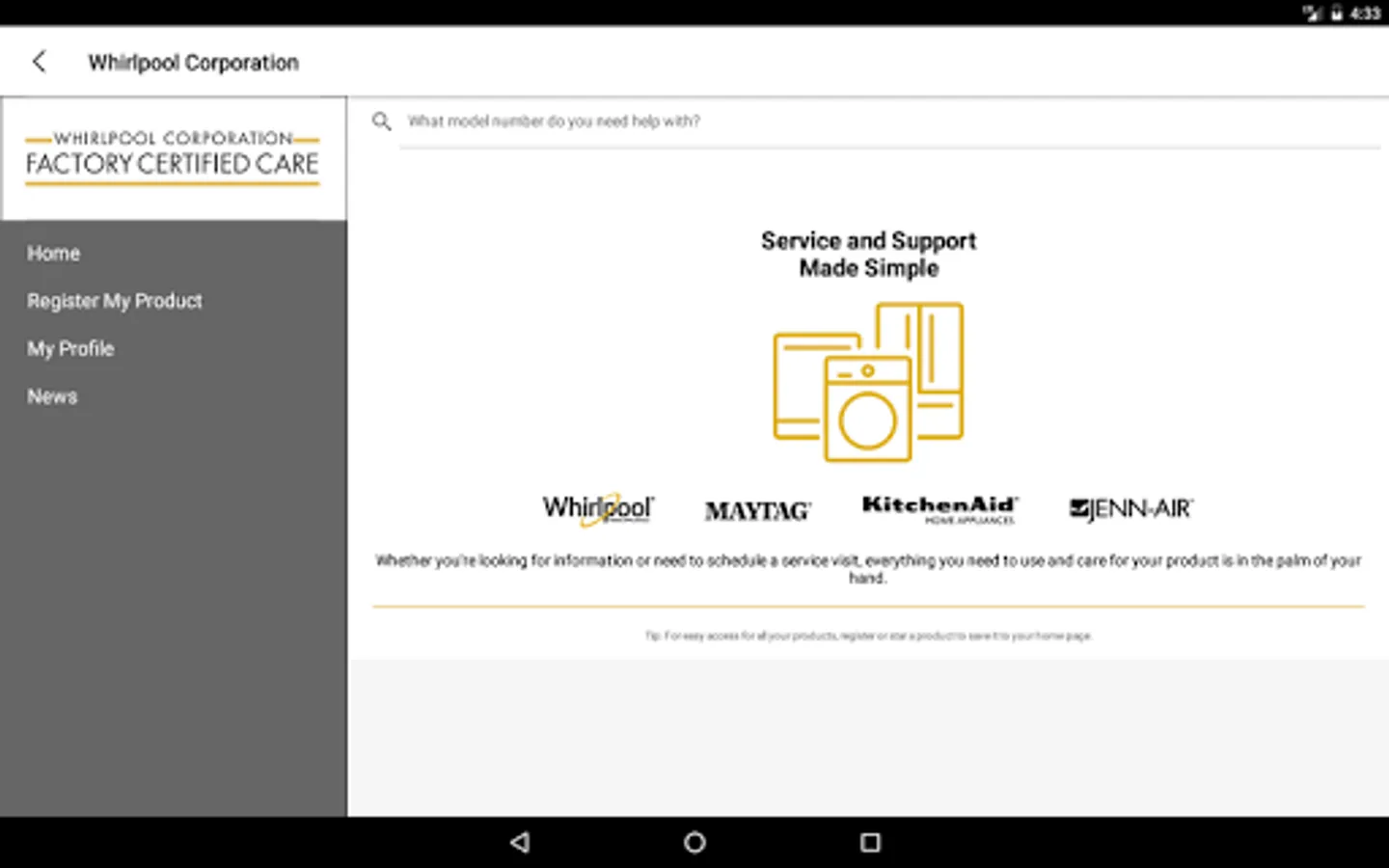 Everything you need for your appliance is in the palm of your hand. With the Whirlpool® Customer Service App, you’ll have access to tools for installation and ordering parts, along with videos and all product manuals.