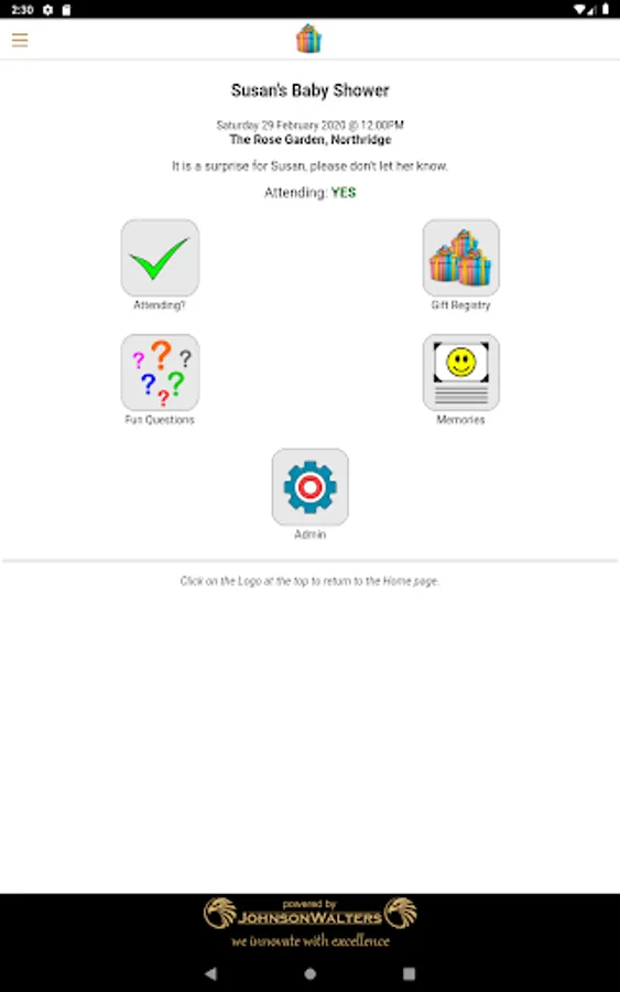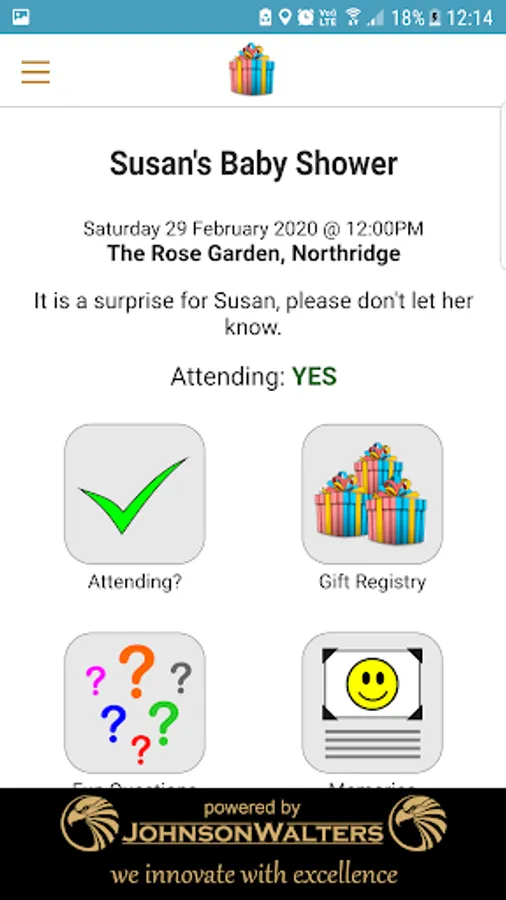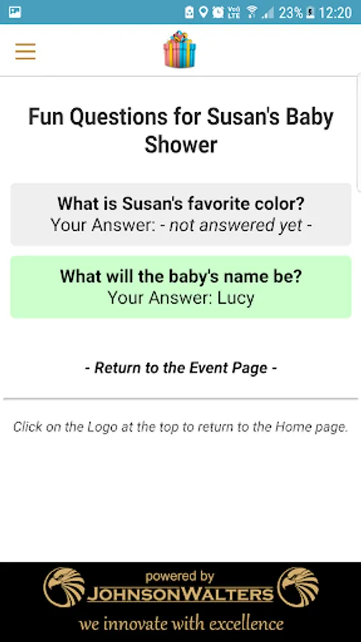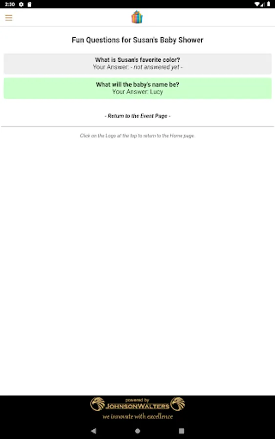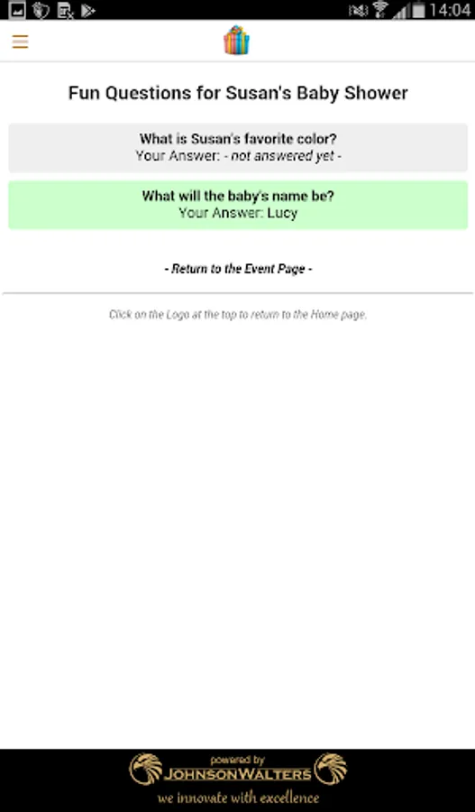 Set up some fun questions which your guests can answer, and see who gets it right. Only guests using the App will be able to answer the questions in the App. This way even guests who will not be attending can be part of the baby shower.
