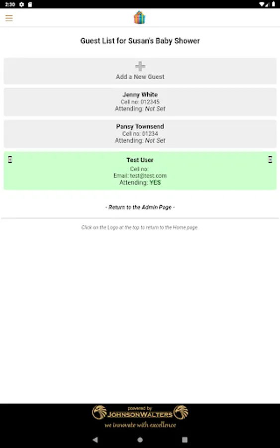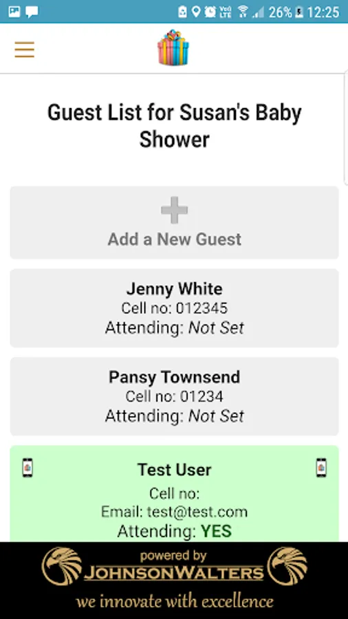 Manage your guest list by loading guests you are inviting to the baby shower on the App. You can mark them as attending or not, and manually reserve gifts on the registry on their behalf. If the guests choose to use the App, they will be able to do all of this for themselves.
