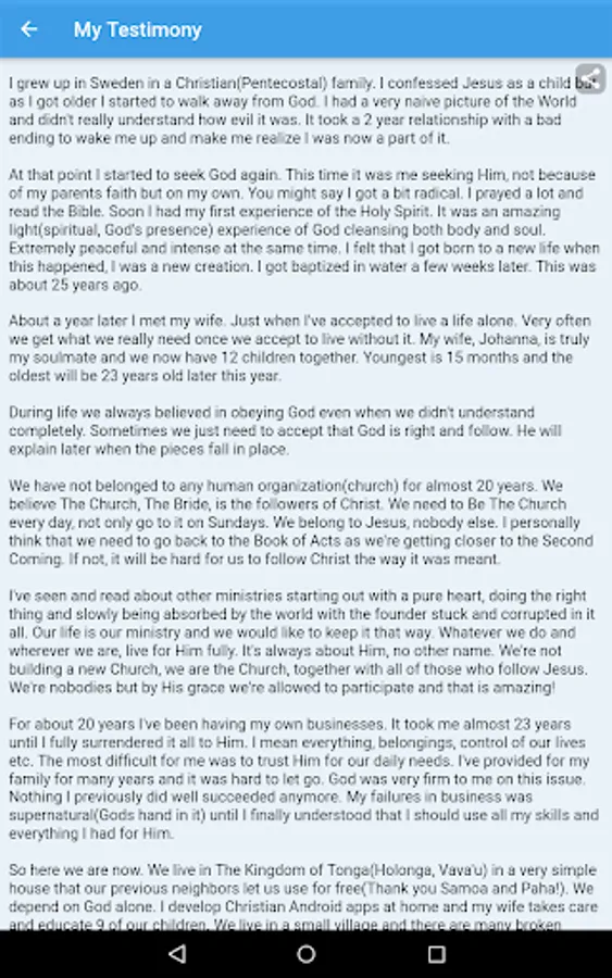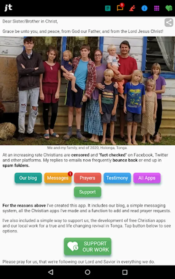 I've also included a simple way to support us, the development of free Christian apps and our local work for a true and life changing revival in Tonga.