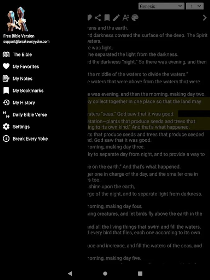 Free Bible Version (ASV) app was made with the user in mind. It is part of the Bible project Break Every Yoke. The aim of the project is to provide offline Bibles to all peoples of the Earth, in their own language. You can read more about Break Every Yoke on the link below.