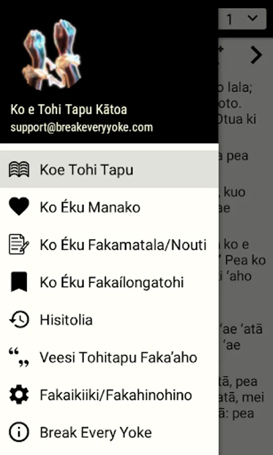 Na’e fa’u e app ko eni ki he liliu ‘a Ko e Tohi Tapu Kātoa moe fakakaukau kia koe teke ngaue’akii. Koe taumu’a e ngaue koenii ke malava ‘e he kakai kotoa pe ‘i mamani ke ma’u offline atu e Tohitapu, ‘i he ‘enau takitaha lea. Teke lava ‘o toe lau ki he Vete ‘o e ‘ioke kotoa pe he he link ‘i laloo.