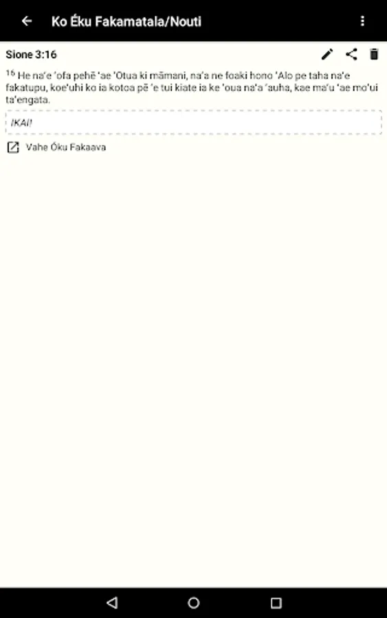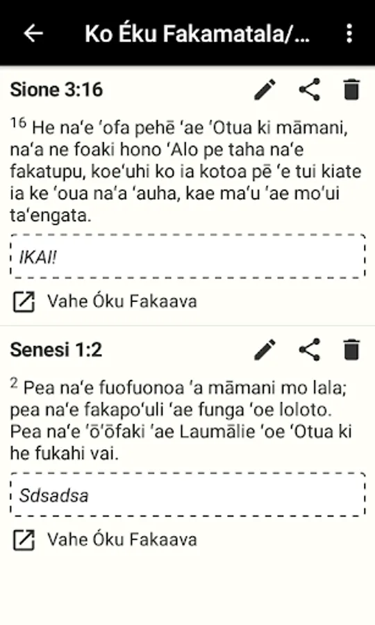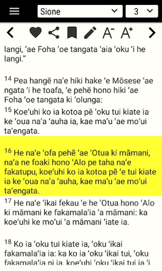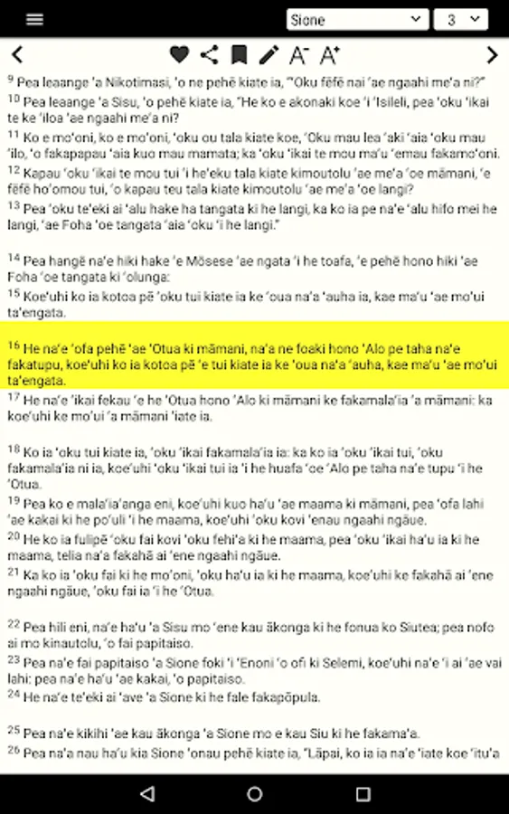 Hiki pe tamate’i e ngaahi veesi Tohitapu, hiki ha’o nouti pe faka’ilonga’i. ‘E faka’ilonga’i katoa e ngaahi konga kuo ke ‘osi lauu.