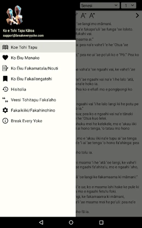 The Holy Bible app was made with the user in mind. It is part of the Bible project Break Every Yoke. The aim of the project is to provide offline Bibles to all peoples of the Earth, in their own language. You can read more about Break Every Yoke on the link below.