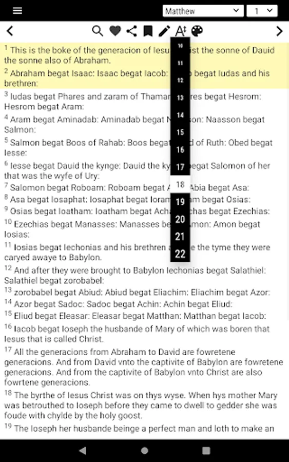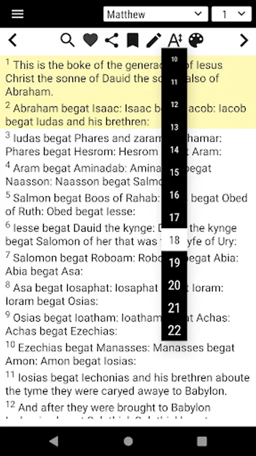 Adjust text size to what is comfortable for your eyes. Navigate easily to other Bible books and chapters in the top menu.