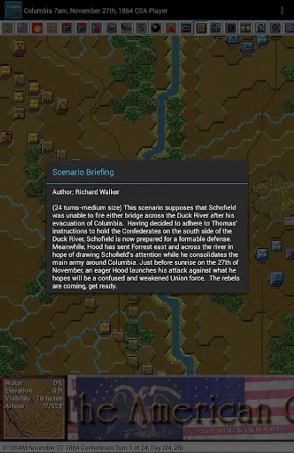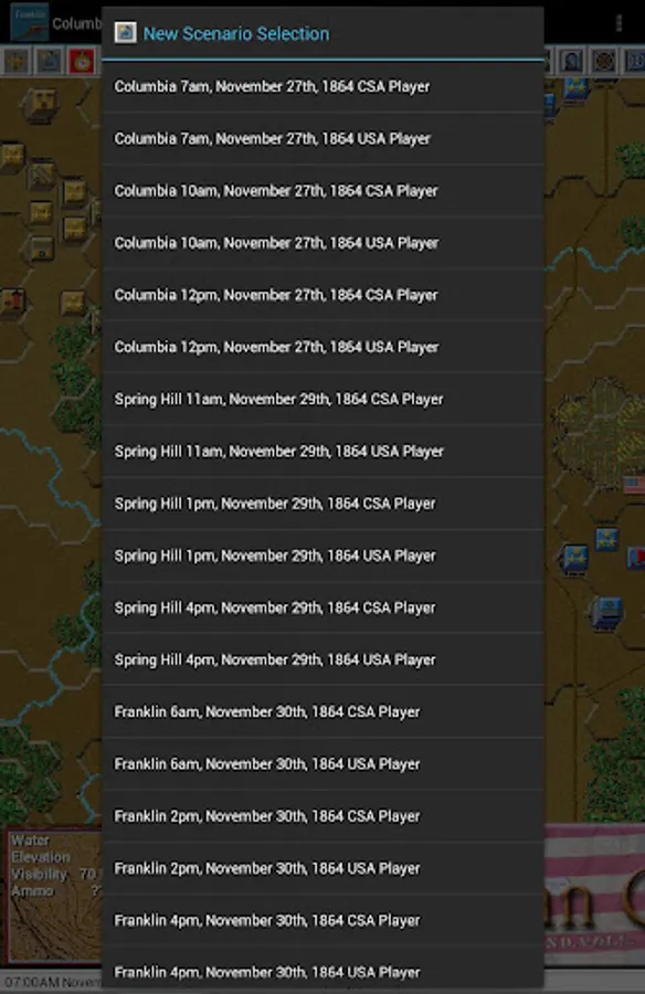 This is a paid release in the touch Civil War Battles series. This release includes 30 scenarios from the Franklin and Nashville campaign covering 15 situations where you can play as either Confederate or Union commander. You should first install and play the free Civil War Battles app to test the game engine on your device and become familiar with the interface.