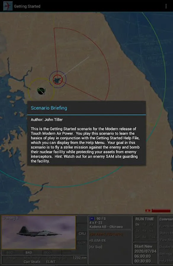 In this release of Modern Air Power there are 21 scenarios that give you the opportunity to learn about air operations from Air Superiority to Air Mobility. You command a number of different modern aircraft such as the F-22, F-35, B-2 stealth bomber, CV-22 Osprey, and E-3 AWACS. You face modern enemy aircraft such as the Su-30 fighter under the control of an Artificial Intelligence opponent.