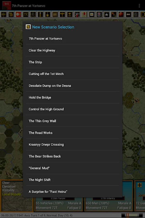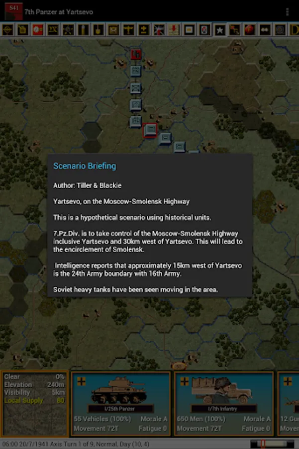 This release includes 14 historical and hypothetical scenarios based on the PC Panzer Campaigns game of the same name. There are 11 scenarios where you play the German commander and 3 scenarios where you play the Russian commander, in all cases against the AI.