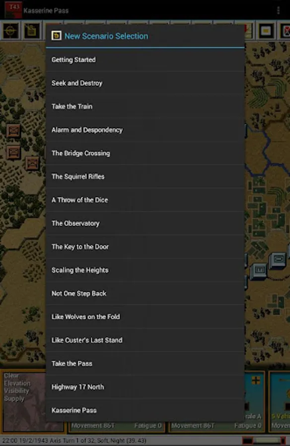 This release includes 16 scenarios based on the PC Panzer Campaigns game of the same name. These scenarios allow you to play the part of the German commander during the battle against the AI commanding the Allies. The scenarios range from the initial fighting against the British, American, and French forces through the climatic battle of the Kasserine Pass as well as some hypothetical scenarios.