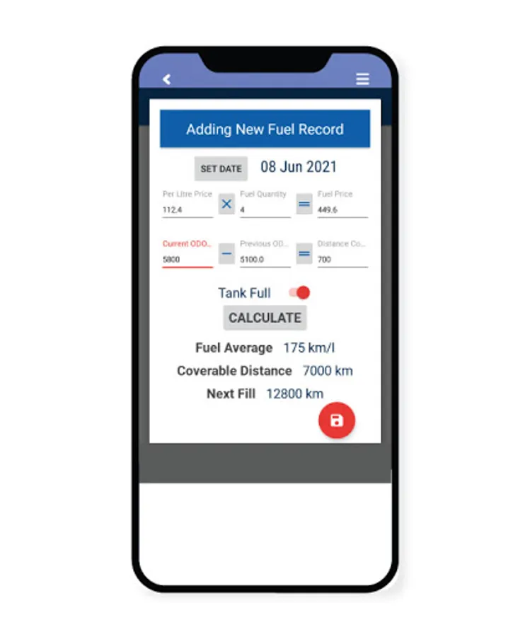 - Add fuel quantity and price while filling fuel.