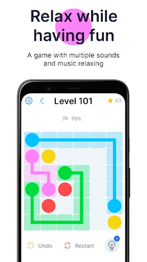 If you love playing connect dots games and looking for fantastic connecting puzzle games containing several levels, then this dot puzzle game is your right choice. We have brought you one of the top dot puzzle games with different levels. You can select any level and start playing right after installing the game. The purpose is to connect the same color dots by drawing pipelines between them. So, if you are looking for fun connect the dots color games to play in your leisure, try this amazing dots color game, link the dots and enjoy as long as you like.