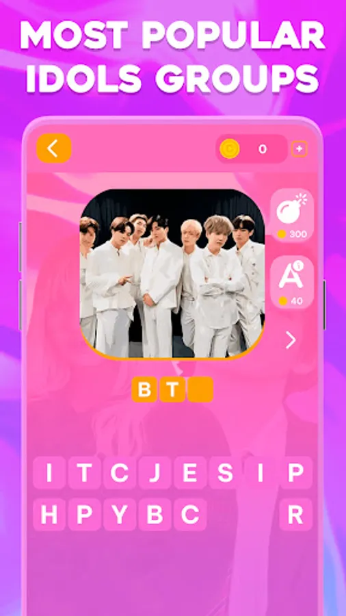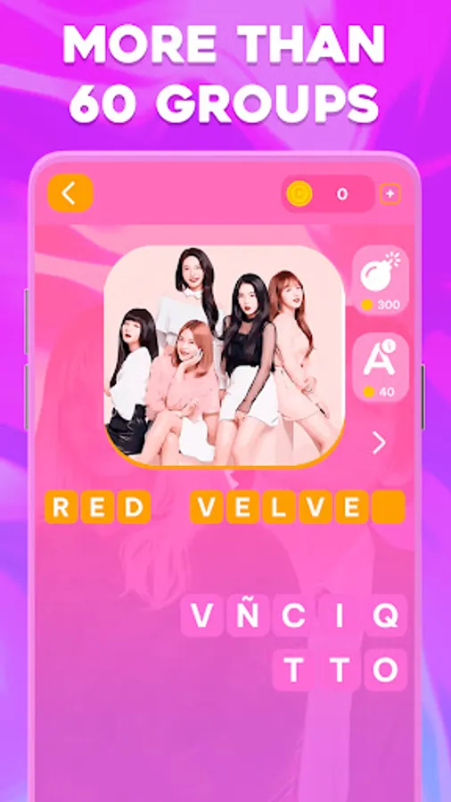 Playing this kpop game is easy, you will see an image of the kpop group, touch the letters to form the name of the kpop group, that easy! But that's not all, you can use the clues in the most difficult levels of this guess the kpop group - kpop quiz.