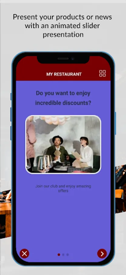 With My Restaurant you can visualise how to turn your restaurant business into an application where you can see your menu, sign up your customers to your VIP discount club, book a table, etc, etc.