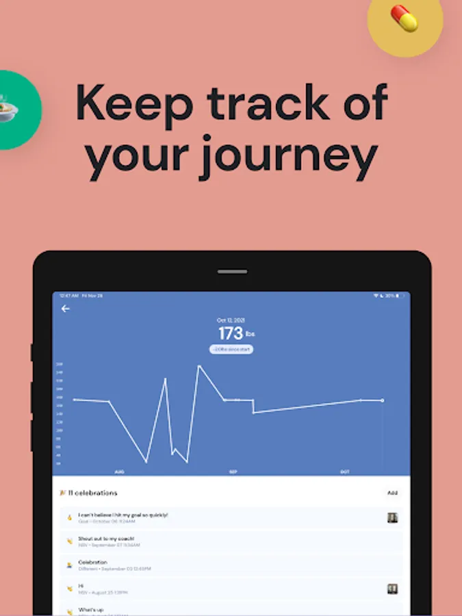 - Track your weight and see all the wins on and off the scale you’ve had along the way