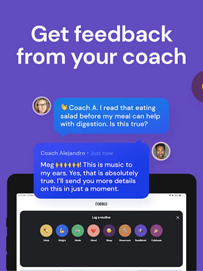 Weight care is more than just eating less and working out more. If that were true, we wouldn’t see over 70% of people bounce back to their starting weight after leaving those types of programs. Been there before? Don’t worry, we got you. The Found mobile app puts our weight care program in your pocket. Use the app to track routines, reflect on your highs and lows, and share daily updates with your health coach. This will help them continue to offer you a truly personalized and tailored care program to fit your life, right now. Going on vacation? No worries, your coach can help with planning. It’s your week with the kids and their favorite food is Mac-n-cheese? No worries, we know how to sneak in the veggies. We got you! This simple but powerful app will help us navigate this journey together. Pinky-swear.