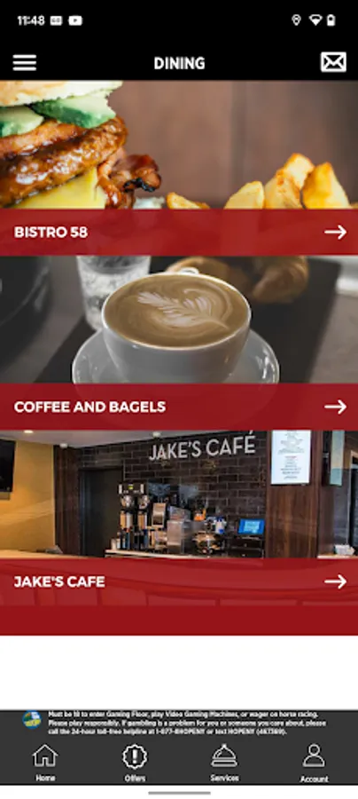 Jake’s 58 features 1,000 video lottery terminal (VLT) gaming machines, including electronic table game favorites Blackjack, Craps, Roulette, Baccarat and Three Card Poker, thanks to the Interblock Stadium. Player’s Club is the casino’s loyalty program and is available to guests at no charge. Player’s Club Members earn free play rewards, hotel stays, special offers & more based on individual play. Jake’s 58 also houses four Off-Track Betting kiosks with racing simulcast monitors.