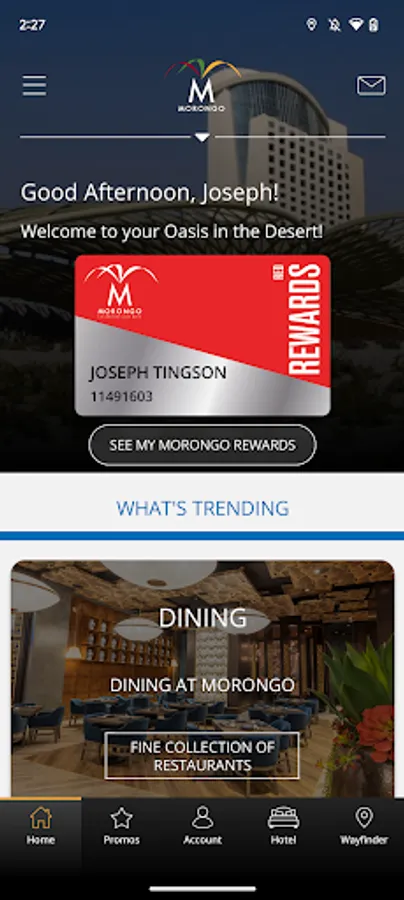 When you log in with your Morongo Rewards account, you get the most out of the Morongo app! View your offers, current points, tier status, Free Slot Play balance, check-in to drawings, personalized in-app exclusive offers, direct access to your Casino Host, and more!