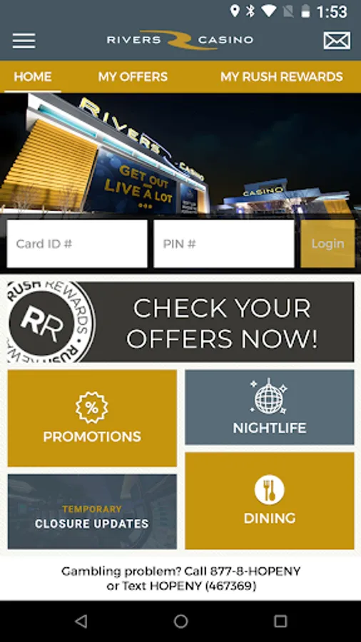 • Become a Rush Rewards member and get instant access to your account information. What's more, our casino app will keep you updated on the latest special offers and help in finding promotions, directions, restaurant options, and more!