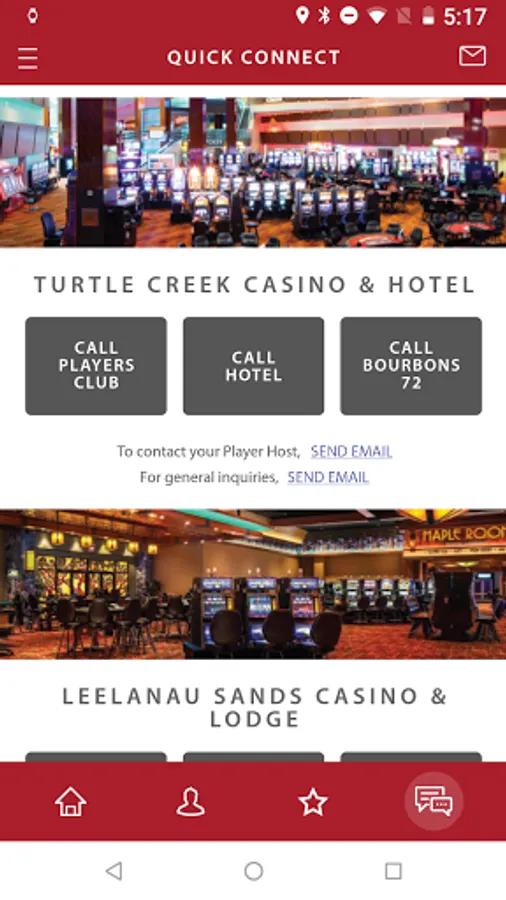 The Turtle Creek Casino and Leelanau Sands Casino app puts the power in your hands with exclusive access to your Players Club rewards information. Explore all three of our showstopping properties, Turtle Creek Casino, Leelanau Sands Casino, and Grand Traverse Resort and Spa using just one app! Turn your rewards into overnight adventures with quick access to online hotel reservations, book a tee time on one of our award-winning golf courses, or make dining and spa reservations at the touch of a button.