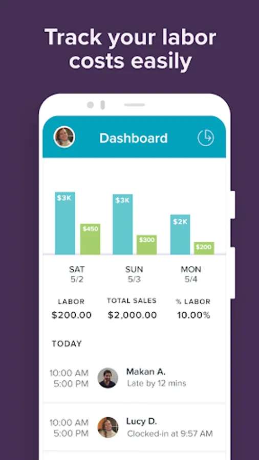 📈 Tracking business performance: Get a real-time view of your labor costs and sales—from anywhere. Tying our team management, employee scheduling, and time tracking to your payroll allows you to see how scheduled shifts and labor costs are impacting your bottom line.