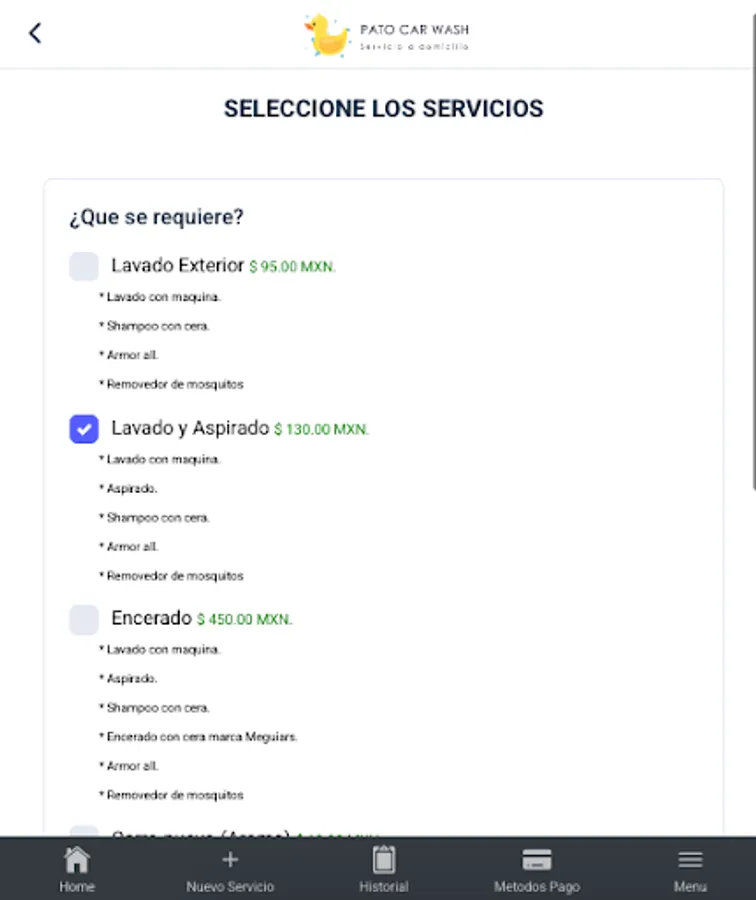 Washing, vacuuming, waxing, of vehicles through a practical platform, safety, quality and experience characterize us.