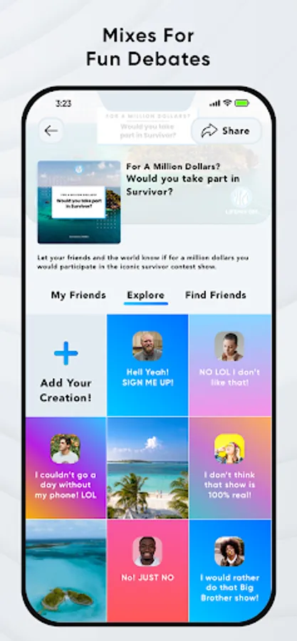 This is where you can have lots of fun with friends by sharing your opinions & perspectives in fun debates, see what your friends are thinking!