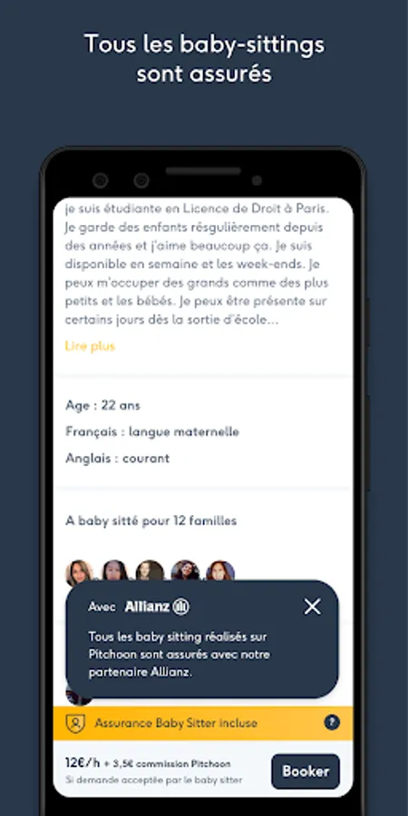 Families are selected for you and your baby-sittings are provided by Pitchoon with Allianz.