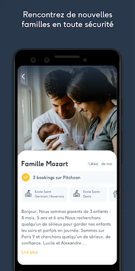 "Our ambition is to simplify the daily life of each family by allowing them to choose their babysitters according to their own criteria of requirement, safely and with ease. "