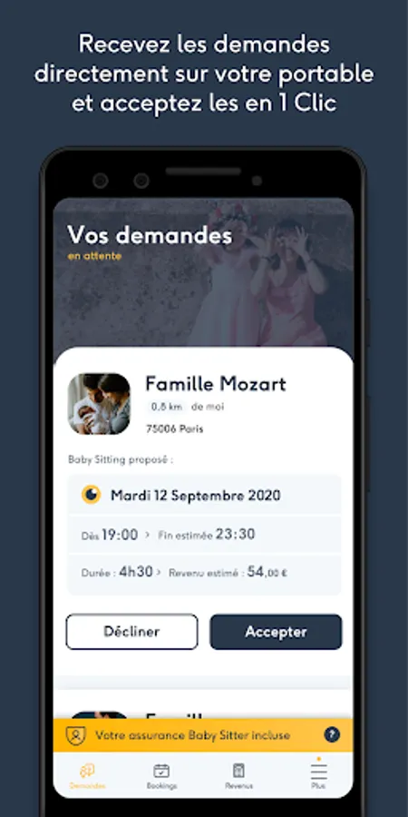 By sponsorship only, the Application allows you to book a babysitter with confidence in just a few clicks.