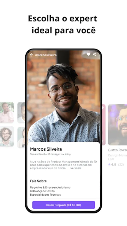 Here you can get straight to the point. Send the expert your specific context and receive guidance for exactly what you need. No more wasting time watching generic content.