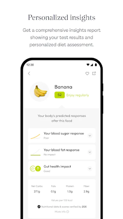 Our studies show that one-size-fits-all nutrition just doesn't work. So the ZOE program starts with the most comprehensive at-home test available – analyzing your gut microbiome, blood sugar, and blood fat – to get an accurate picture of your unique biology.