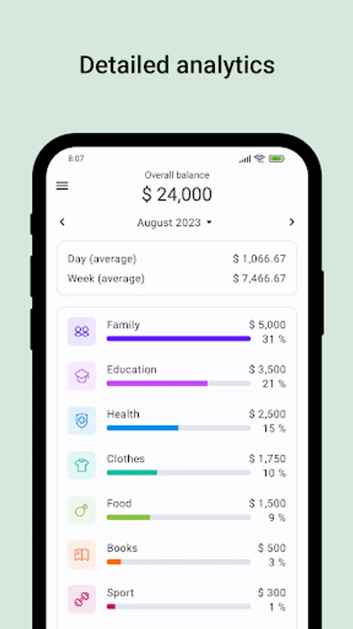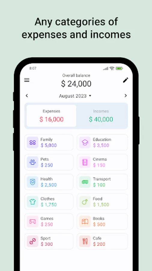 Classify your spending more conveniently with the help of our app's multiple pre-defined categories. Create a limit for different categories of spending using this finance tracker and budgeting app.