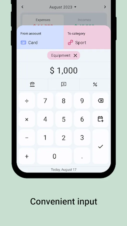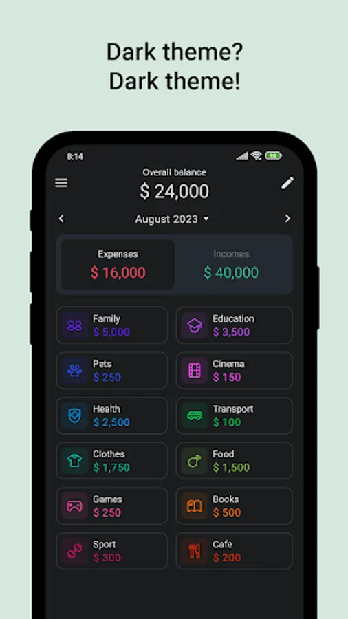Quickly and accurately keep track of expenses, income, and transfers with the help of this expense tracker. Select the expense type and the transaction time in the money tracker. To help you better record your transaction - add notes and receipts.