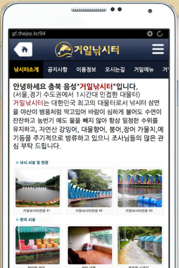 Geoil fishing're blocking like hills are folding the fishing on three sides as the Republic of Korea leading the objective foundation wind violently blowing the surface is calm and do not remove the water in nongbeongi always maintain a constant water level, and the wild river carp, objective hyangeo, crucian carp, eel Snakehead, and so periodically stocked catfish, etc. We look forward to nimdeul of the investigation.