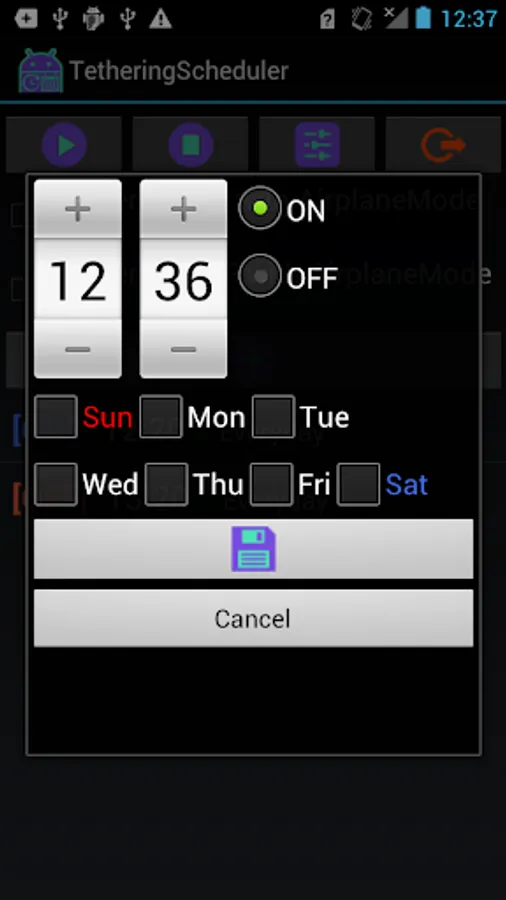 Turn ON AirplaneMode when the scheduler at the tethering OFF