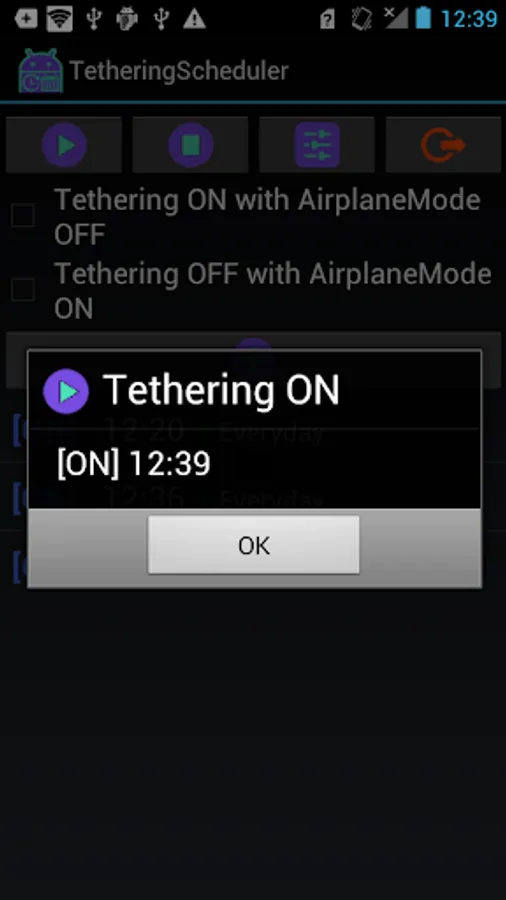 Turn OFF AirplaneMode when the scheduler at the tethering ON