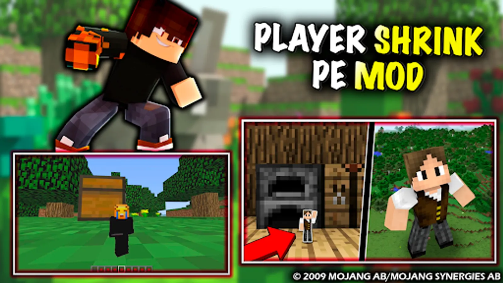Here is the Player Shrink Mod for Minecraft with shrink potion, shrink size gun, npcs, superheroes, baby players, mobs and craft pe pixel skins. If you want to shrink everything from trees to houses than this addon is for you! Simply shoot the shrink ray at any target and it will shrink into a 7x3 area. All you have to do is apply the behavior pack and you're good to go.