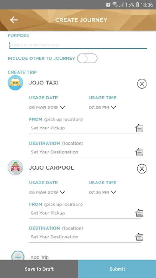 Using Jojo Trip enables your team to get information on pre-assigned business trip details while waiting for the rides from specific assigned car/taxi identity and accurate pick-up points.
